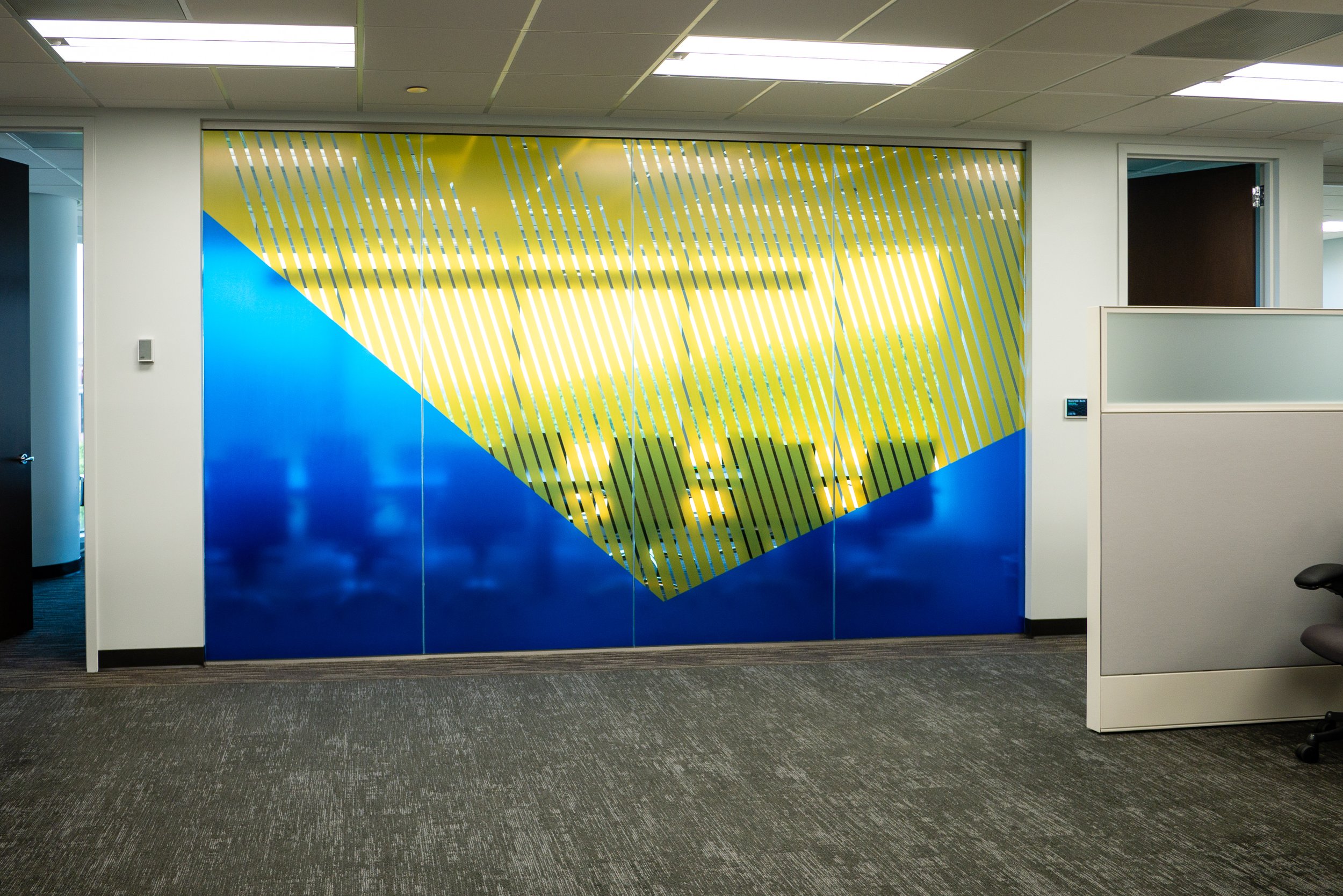 The company’s policy does not allow for offices on exterior glass, however they wanted to have transparency throughout the space. Designing with glass conferences and open cubicles we were able to achieve their desired transparency. By selecting alternative lighting fixtures and finishes from their standard, we were able to cut costs without compromising on the aesthetics they were accustomed to.